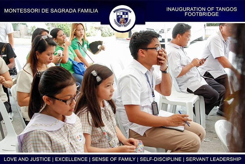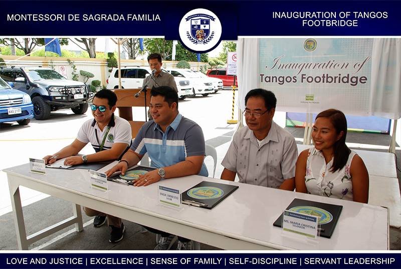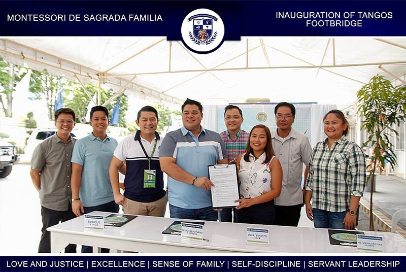 Montessori De Sagrada Familia pledged commitment earlier today regarding the proper utilization and maintenance of the public footbridge located near the campus during its inauguration and turnover ceremony held at the elementary school parking area. School Directress Maria Cristina Silamor assured District II representative Gavini “Apol” Pancho and Mayor Ferdinand Estrella that the Sagradan community will take part in maintaining the condition of the Tangos footbridge located along BS Aquino Avenue.