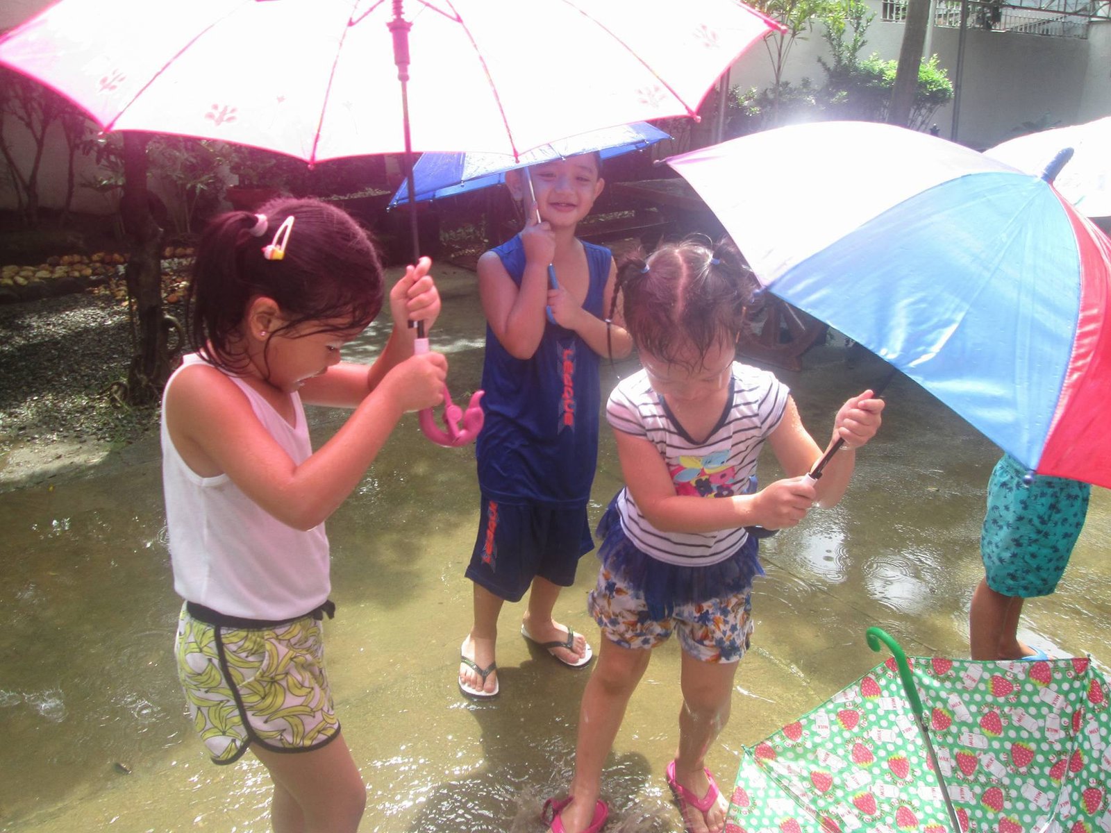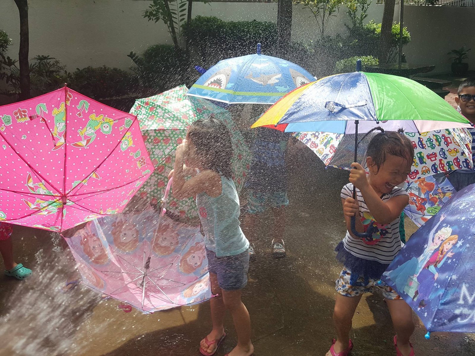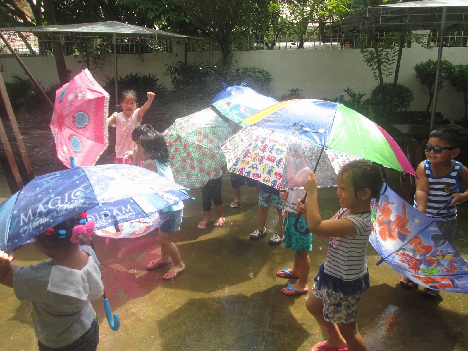 Play is an essential part of early learning. It is the child’s beginning of knowledge. Thus, here in MDSF, the Junior Casa pupils through the initiative of their loving teachers, engaged themselves in an “Umbrella Fun Day” as part of learning the initial sound /Uu/. This letter sound was given emphasis as they used an umbrella while playing under the sprinkles of water.