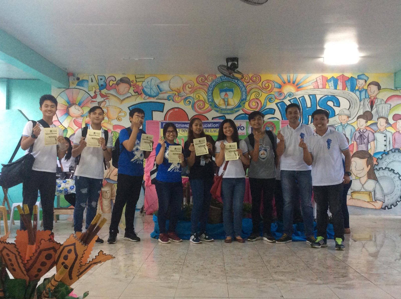 Meanwhile, the 2nd Group for English team ranked 3rd are composed of Jennie Villanueva, Chryster Palacay, Kate Simbulan, Larina Dela Pena, Daniel Kabamalan, Third Guzman, and Ynigo Sagum and for the Filipino category are Joanne Villanueva, Federic Mariano, Joshua Navarro, Ella Mangulabnan, Kristian Asesor, Julianna Peru, and JR Mariano.