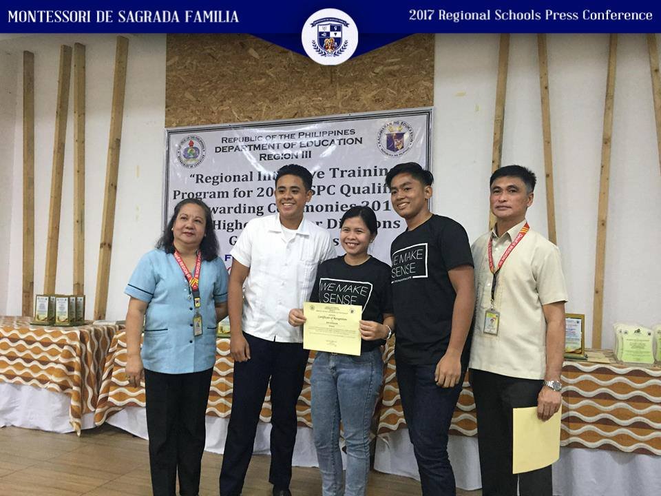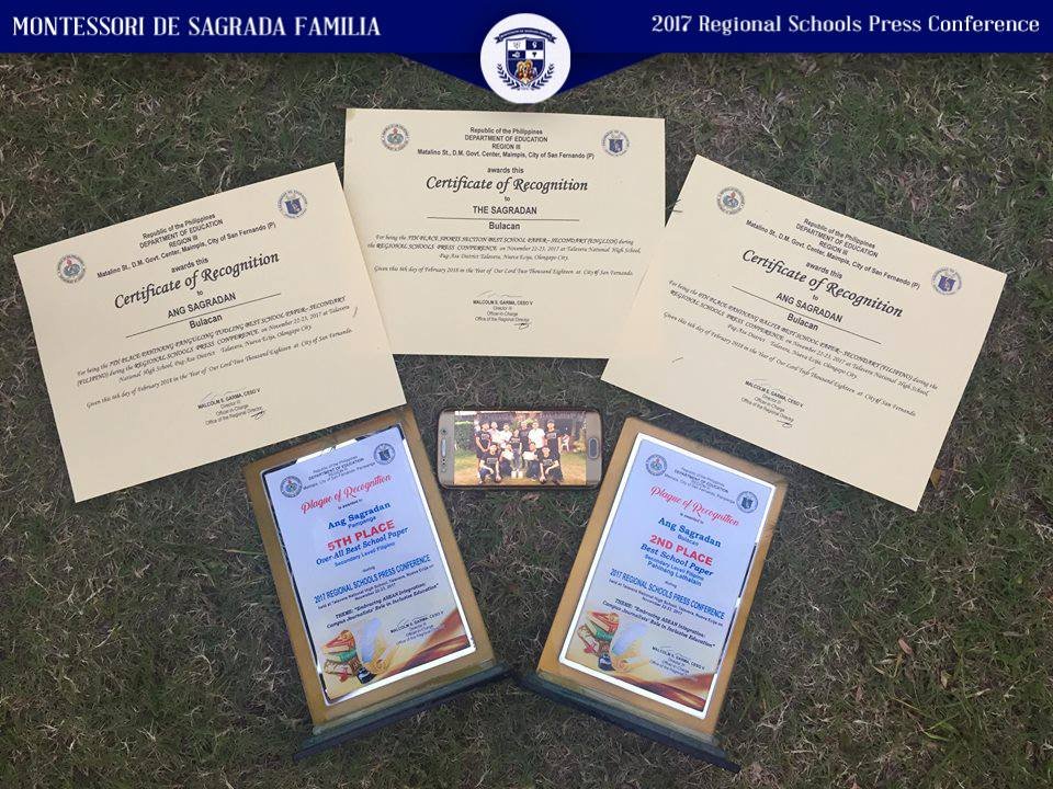 Kinilala bilang panlima sa pinakamahusay at namumukod tanging pampaaralang pahayagan ang “Ang Sagradan” ng Montessori de Sagrada Familia sa buong Gitnang Luzon nitong ika-pito ng Pebrero sa Otel Pampanga, San Fernando City.