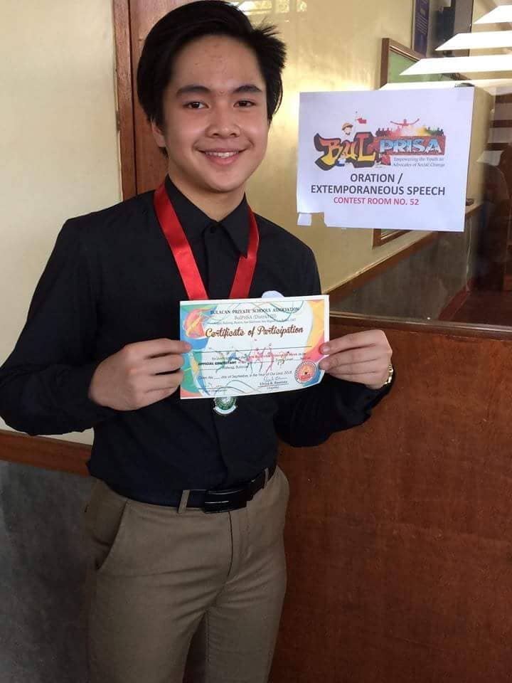 He also said that it took him a lot of training, together with his coaches Ms. Jerusha Eve Ong and Mrs. Vilma Dela Cruz, and preparations to be able to deliver his speech in the best way that he could and to reach his current standing.