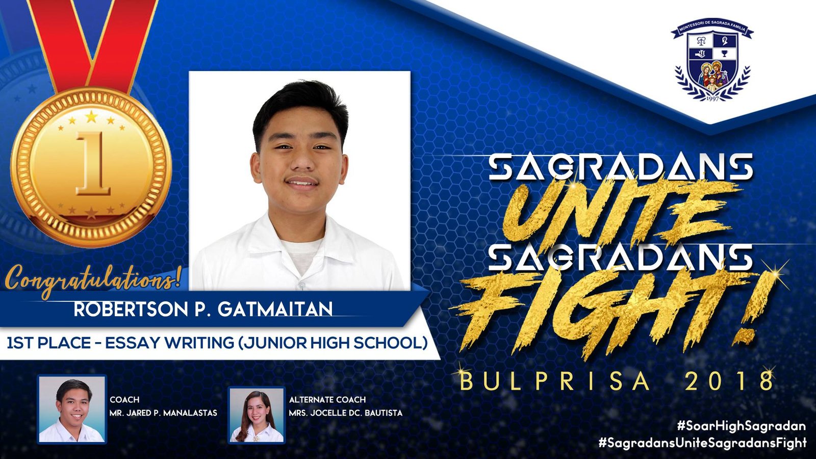 #BULPRISA2018 #CulturalEvents #GoldMedalistEssayWriting #SoarHighSagradans