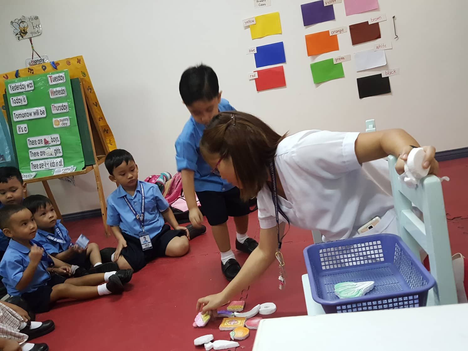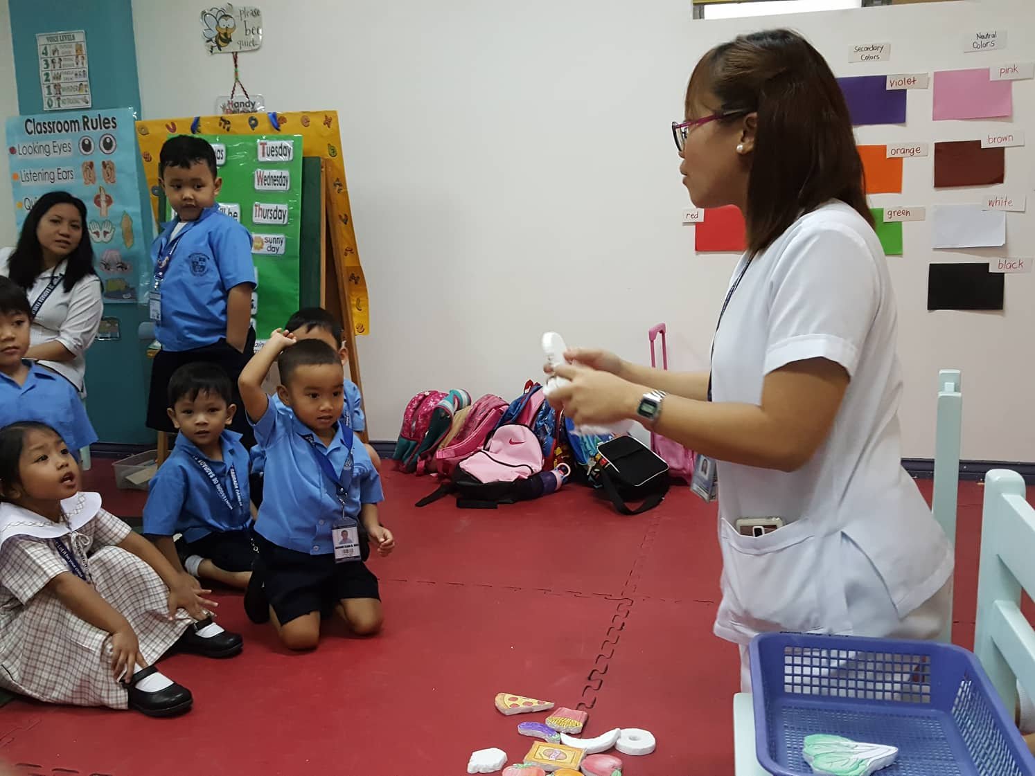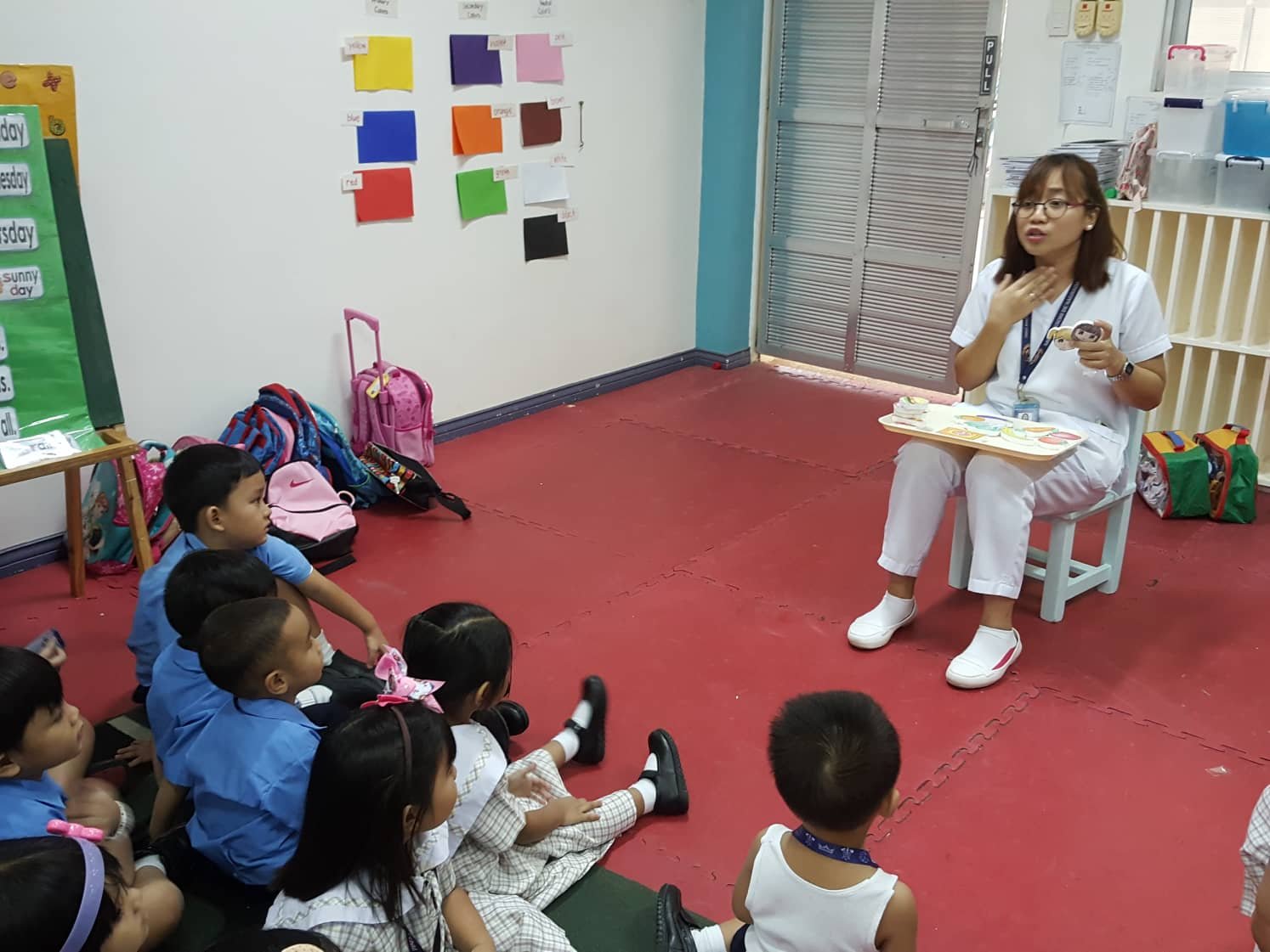 The Junior Casa pupils had an interaction with the school nurse, Ms. Resonia Fritz Mangiral, July 25. Nurse Fritz discussed different healthy habits through a storytelling. The JC pupils were all engaged as they listened to the story of Monica, a girl who loves to eat unhealthful foods.