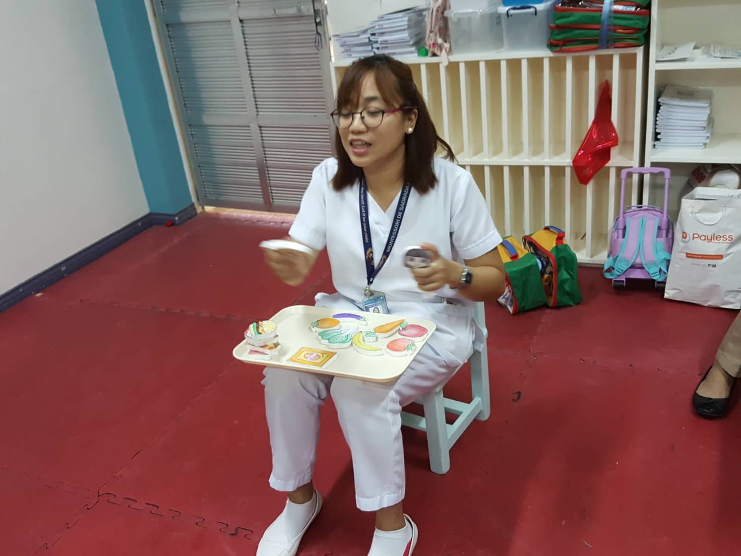 In this story, Nurse Fritz tackled the dangers of eating unhealthful foods as well as the benefits of eating healthful foods. Afterwards, the pupils had fun joining sorting games. Nurse also asked them different questions about the story and about taking care of one’s health.