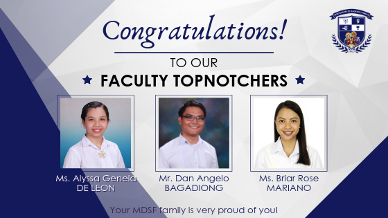 Montessori De Sagrada Familia is proud and honored to be affiliated with faculty employees with exemplary accomplishments. One symbolic milestone of an educator is to be able to obtain his professional license. In the past years, three of the faculty members of Montessori De Sagrada Familia victoriously emerged as topnotchers of the licensure examination administered by the Professional Regulation Commission, Philippines.