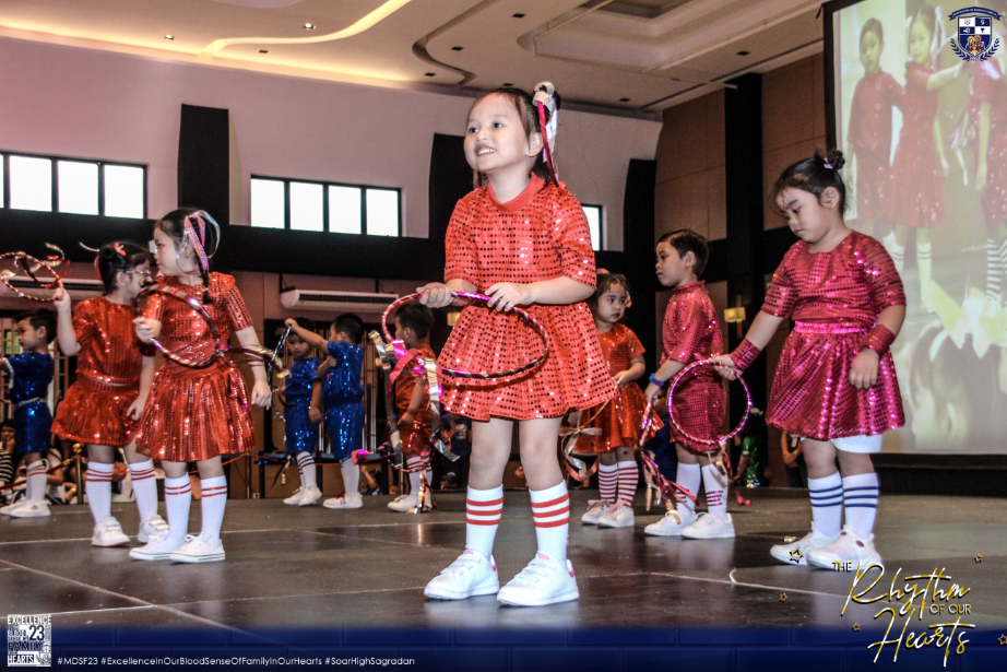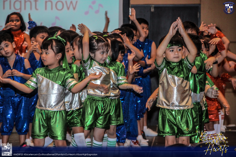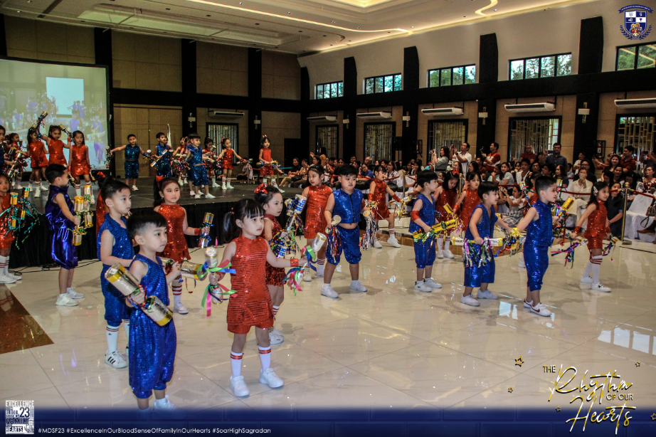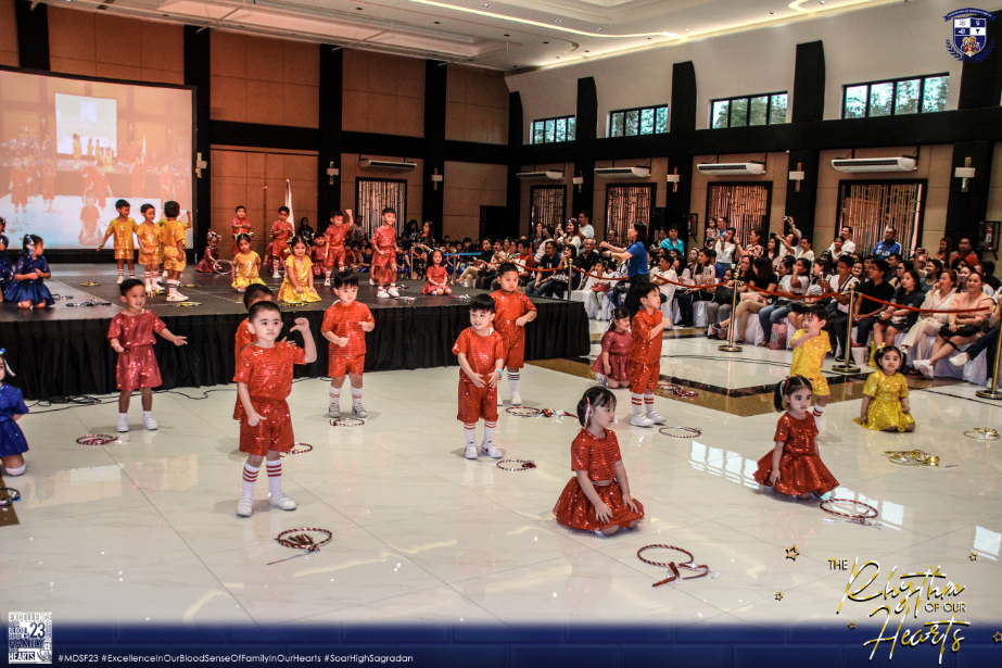 Indeed, Christmas is in the air and our Preschool Sagradans did not hold back to spread their wings as they fly to share the gift of talents and creativity to all MDSF families and to celebrate as well the MDSF 23rd founding Anniversary with the theme “Excellence in our Blood, Sense of Family in our Hearts”. Once again, these pupils offered our community a series of candent dance numbers representing their stunning costumes & props, the songs in their head and depths of their souls in their “Rhythm of Our Hearts” Christmas presentation held last December 12, 2019, at The Chapters, MDSF Social Hall. The event officially started through a prayer by Naomie Amber Alvarez and Maria Bambinella Alcantara, hosted by preschoolers, Sofia Manuel, Neoli Ivana Garcia, Miyuki Sena and Ean Gable Imperial and greatly inspired through the remarks given by our lovely directress Mrs. Maria Cristina S. Silamor.