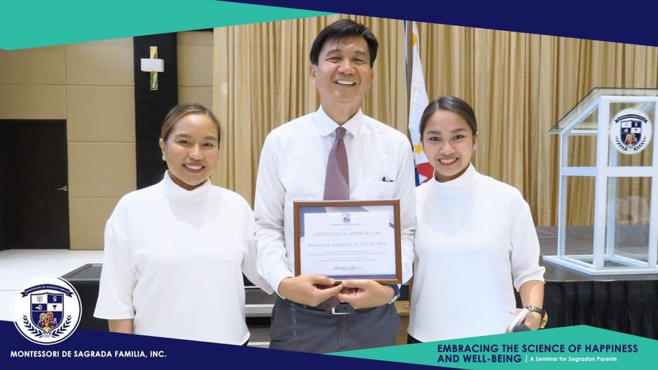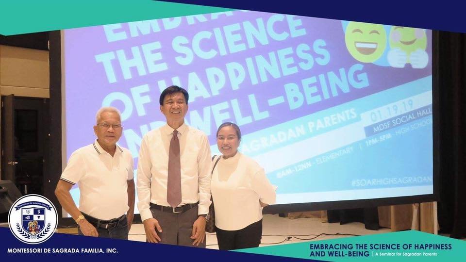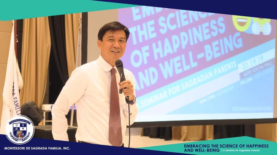 Last January 19, 2019, a seminar on The Science of Happiness and Well-Being was conducted to Sagradan parents of elementary and high school departments. The seminar’s facilitator, professor and clinical psychologist Dr. Ronnie Motilla discussed about the five important keys to achieving a positive outlook and fulfillment in life: positive emotions, engagement, relationships, meaning and accomplishments. He also added the dimension of spiritual deepening as the most important factor in achieving happiness.
