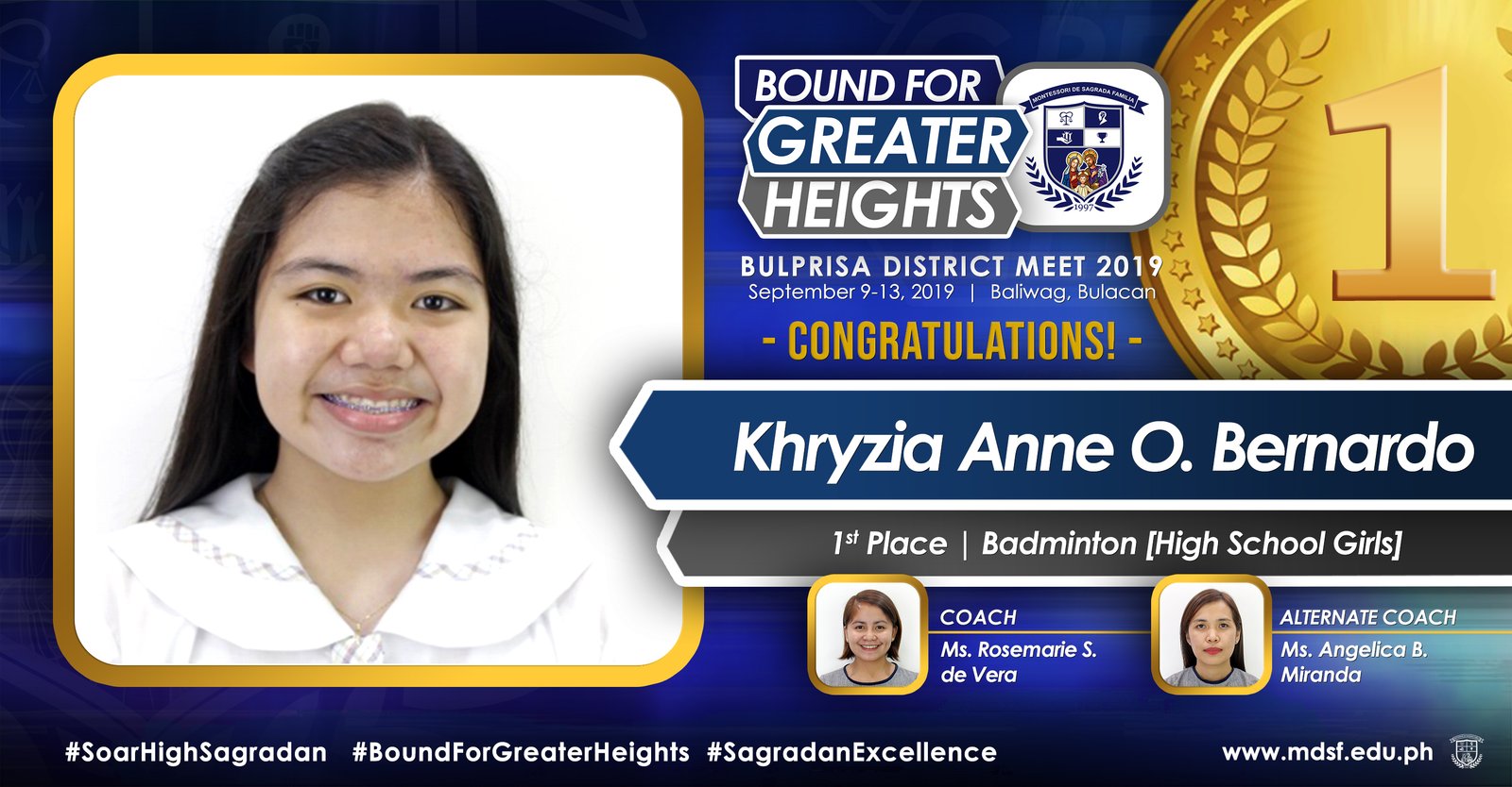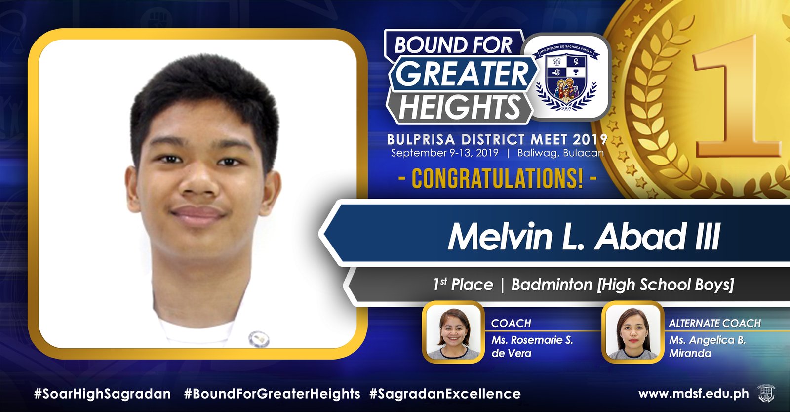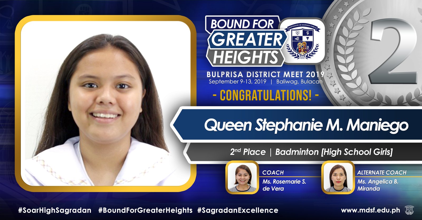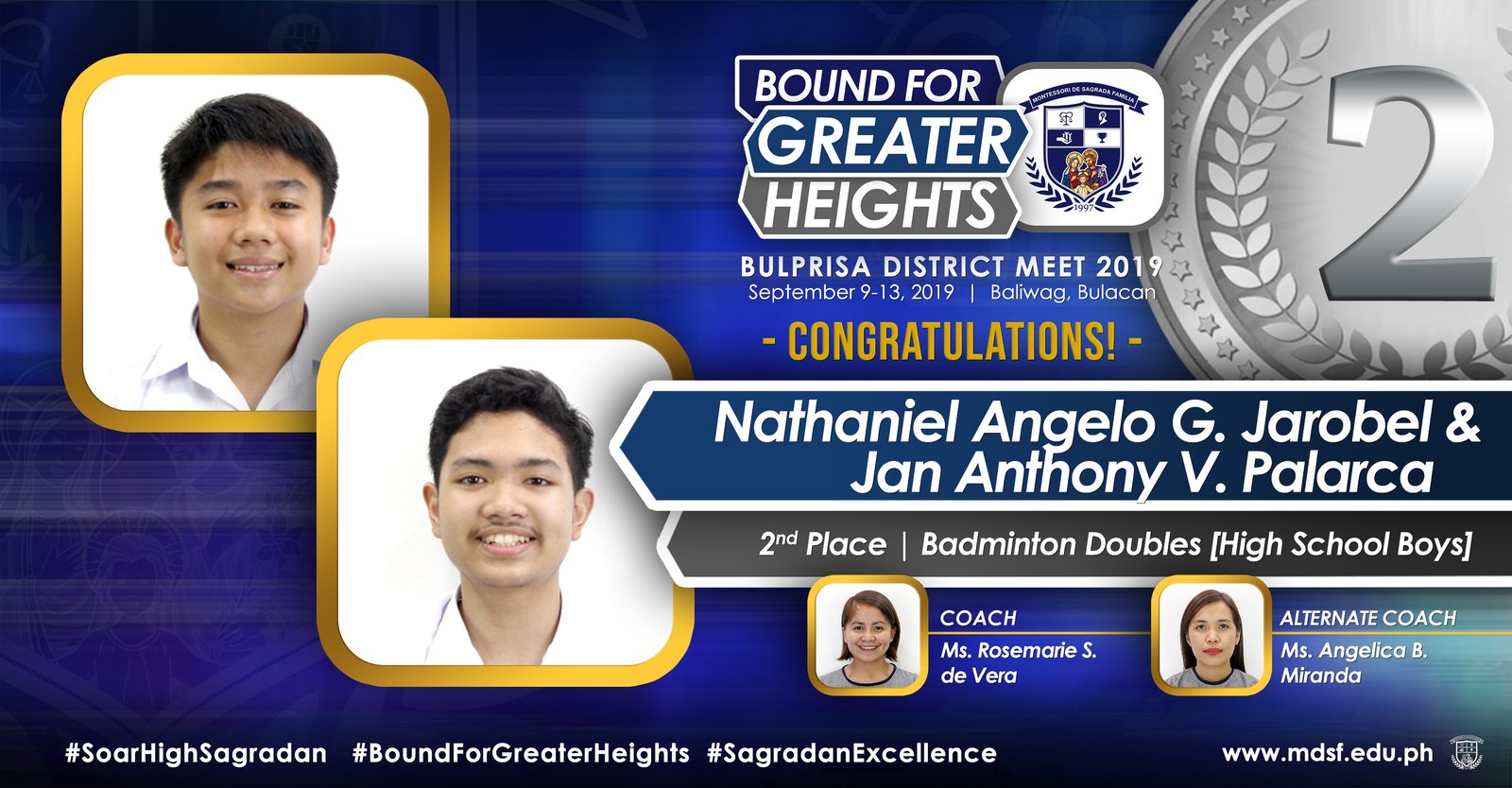 Montessori De Sagrada Familia (MDSF) High School smashers proved that they are bound for greater heights as three players captured gold in the recently concluded Bulacan Private Schools’ Association (BulPriSA) District III Meet Badminton last September 9-13 at Starzone Baliwag.