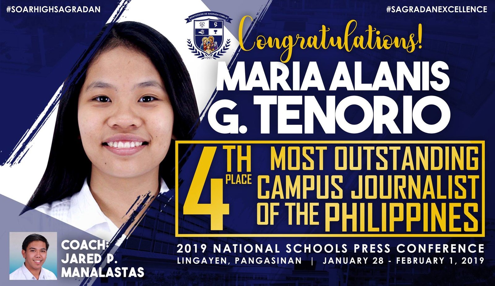 With the goal of making not only the school but her parents proud, Maria Alanis G. Tenorio of Montessori De Sagrada Familia (MDSF) gave all her best in order to ace the National Schools Press Conference (NSPC) 2017.
