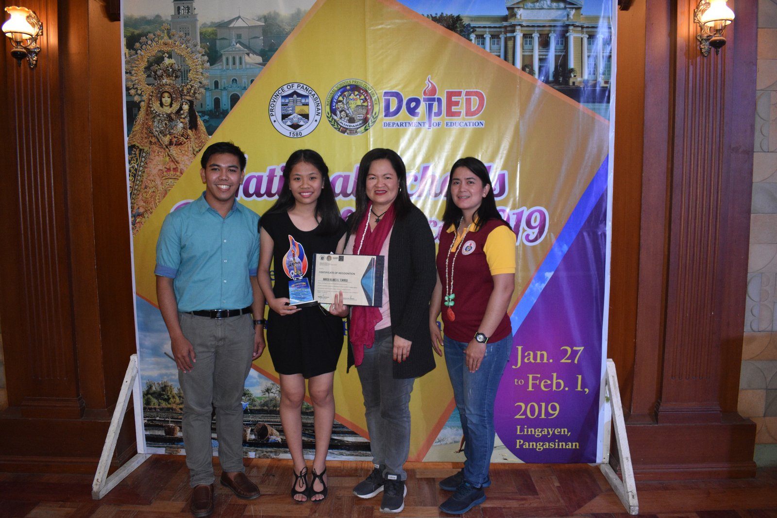 Maria Alanis G. Tenorio copped the 4th Place Most Outstanding Secondary Campus Journalist of the Philippines during the recently concluded 2019 National Scchools Press Conference at Lingayen, Pangasinan, January 28-February 1.