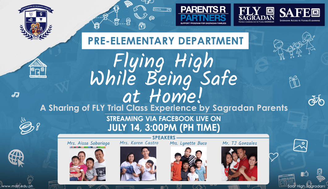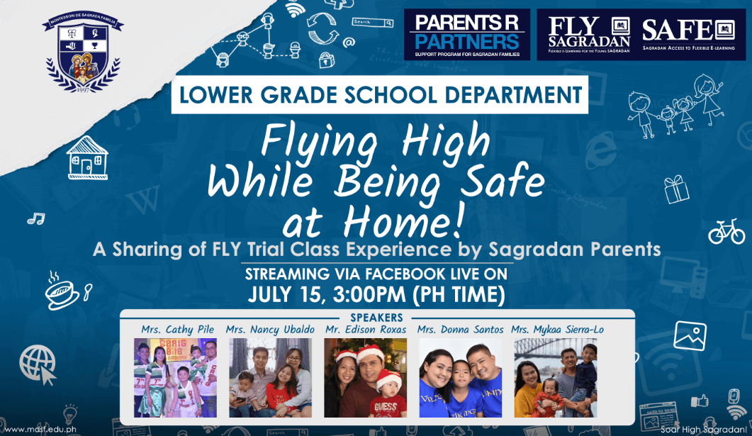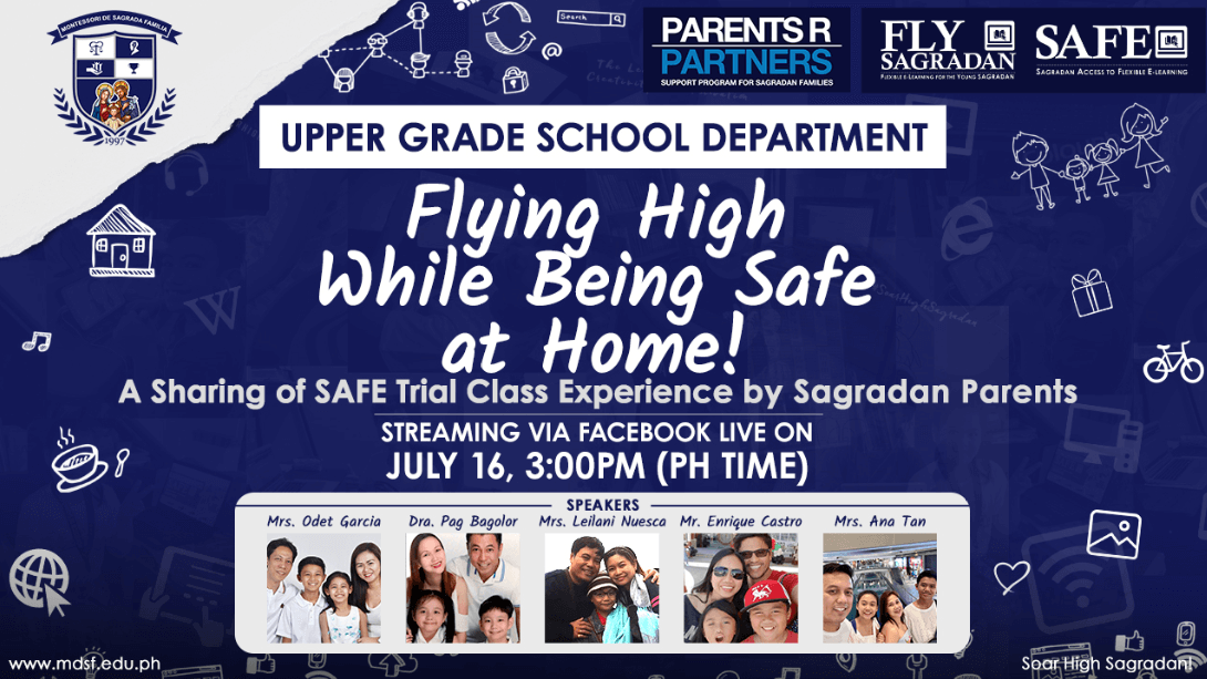 On July 14-17, 2020, the school will hold a live interview with selected Sagradan families who have experienced the FLY Sagradan and SAFE trial class. The session aims to give other families a concrete picture of the things that they need to anticipate and prepare at home in order for their children to have a smooth transition to e-learning.