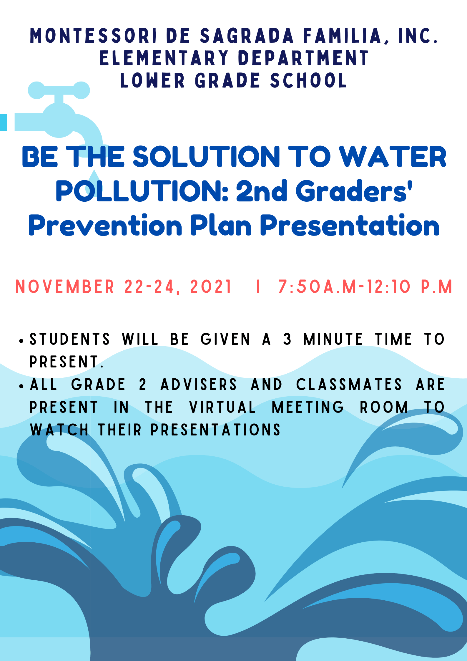 Meanwhile, nature may have been healed through the lack of mobility, still, it takes time and conscious human efforts to recover. This is what the Grade 2 pupils emphasized dwelling on the major consequences of water pollution, while the Grade 4 level focused on the repercussions of pollution in general. After all, without nature, we may cease to exist. On the other hand, the Grade 6 pupils presented a comprehensive research on Covid19 such as the available vaccines, the healthcare facilities, and its economic impact to the country through a webinar. Lastly, the Grade 3 students provided a home prevention program in combating Covid19, and the most important one, the family’s state and relationships during these virtual times tackled by the lovely Grade 1 pupils.