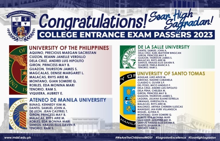 The Grade 12 students of Montessori De Sagrada Familia once again stamped their class in the recently-held college entrance examinations in different colleges and universities both in the NCR and neighboring provinces. A total of 214 seniors coming from all strands of the Senior High School Department of MDSF passed the entrance exams coming…